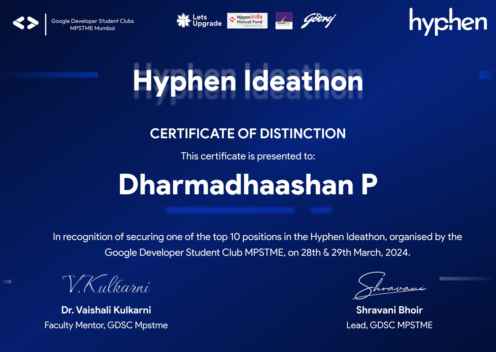 Recognized as a top finalist for technical innovation by GDSC-MPSTME Shirpur.